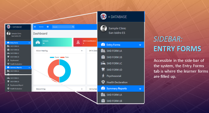 The City School's Division Office of Antipolo wants to eliminate the maintenance & use of their paper-based Forms to gather Health, Dental & Nutrition Information for their 150,000 Students across their 61 Public Schools. Solution We developed an efficient & replicable Health informatics system for the City Schools Division Office of Antipolo (Deped Antipolo OKDIS / Learner's Health Information System)